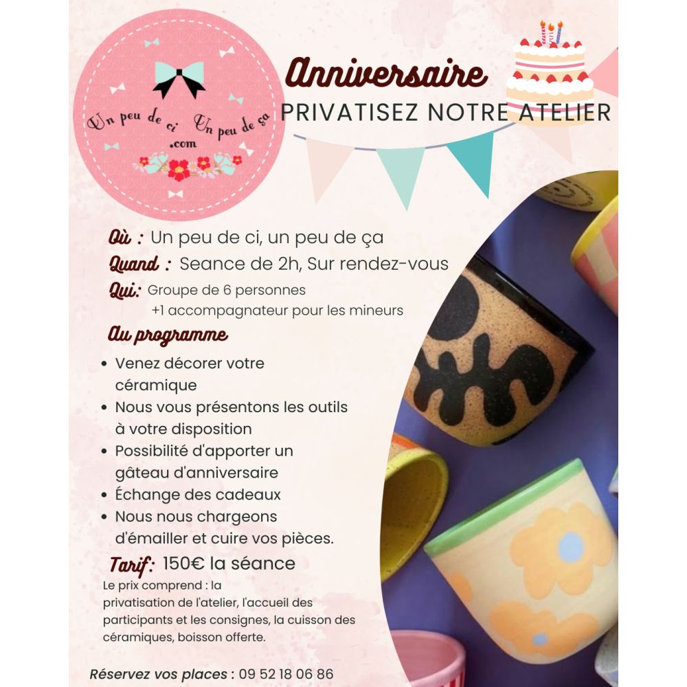 Venez décorer votre céramique, pour 2h de moments inoubliables.