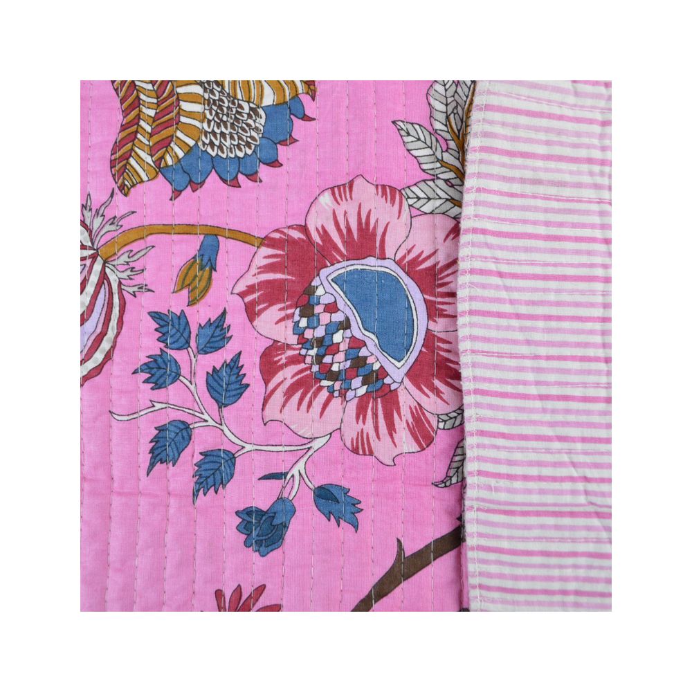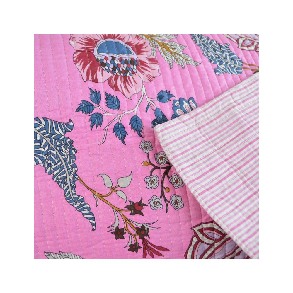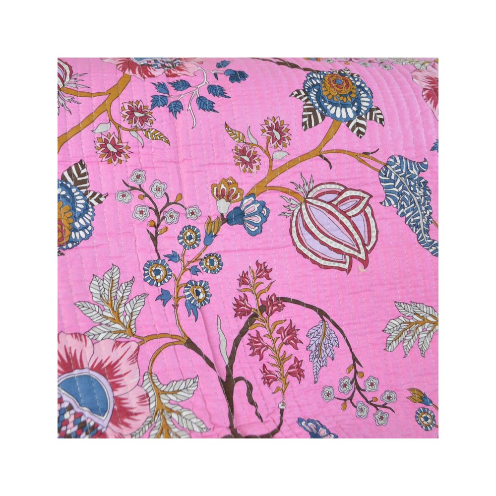 Coton matelassée Bloom motif fleurs Indienne rose