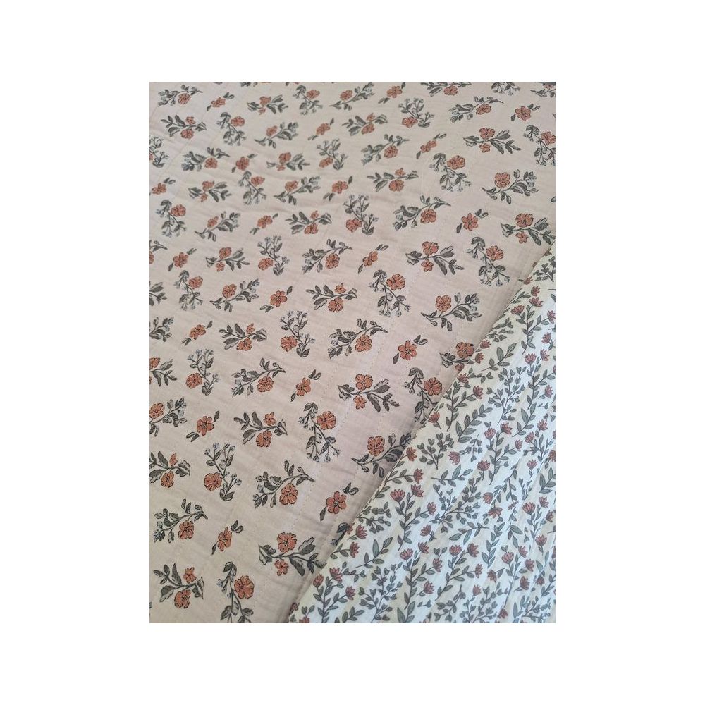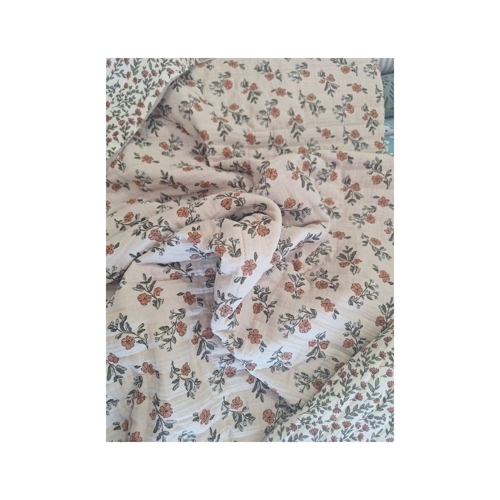 Ce tissu matelassé double gaze séduit par son imprimé floral généreux et ses jolies couleurs.