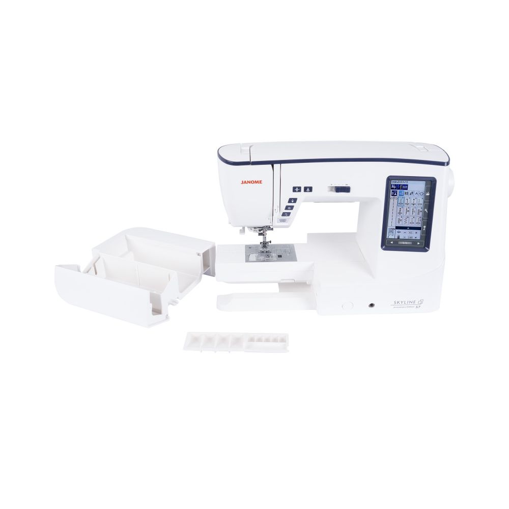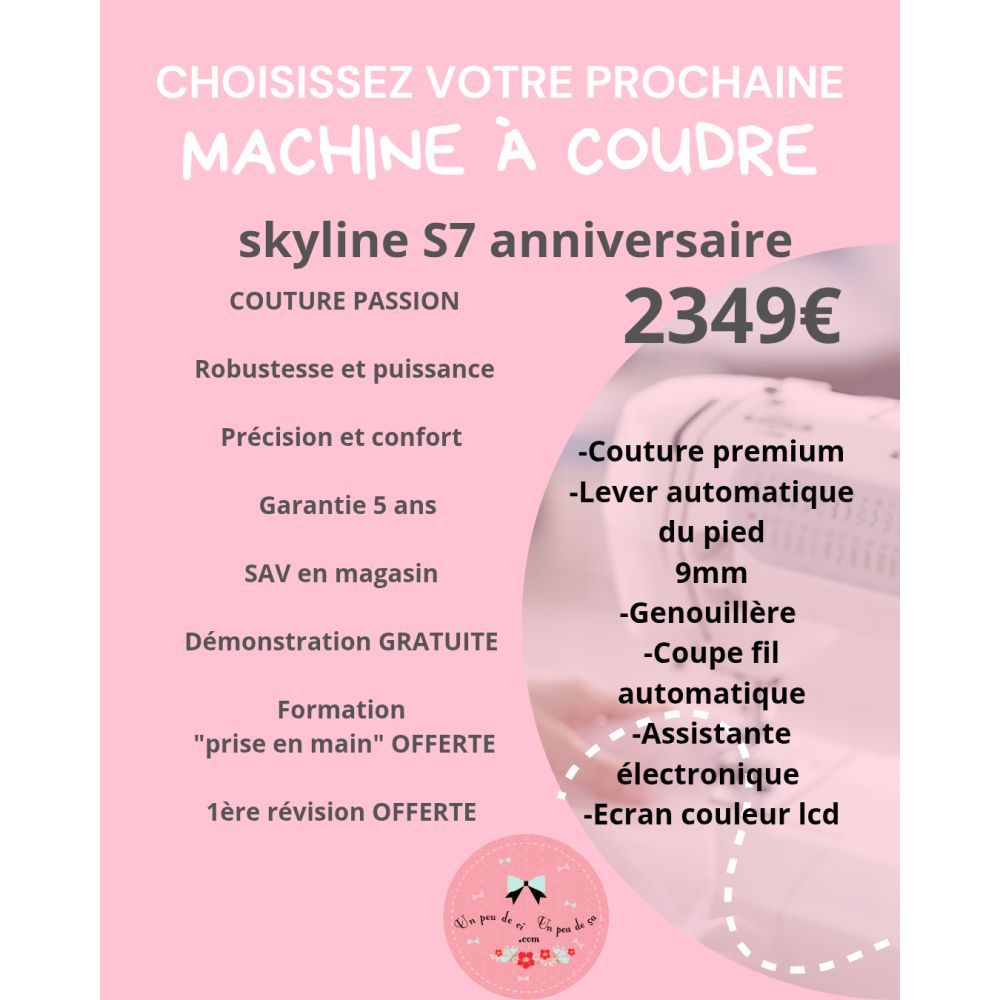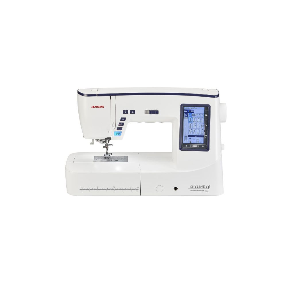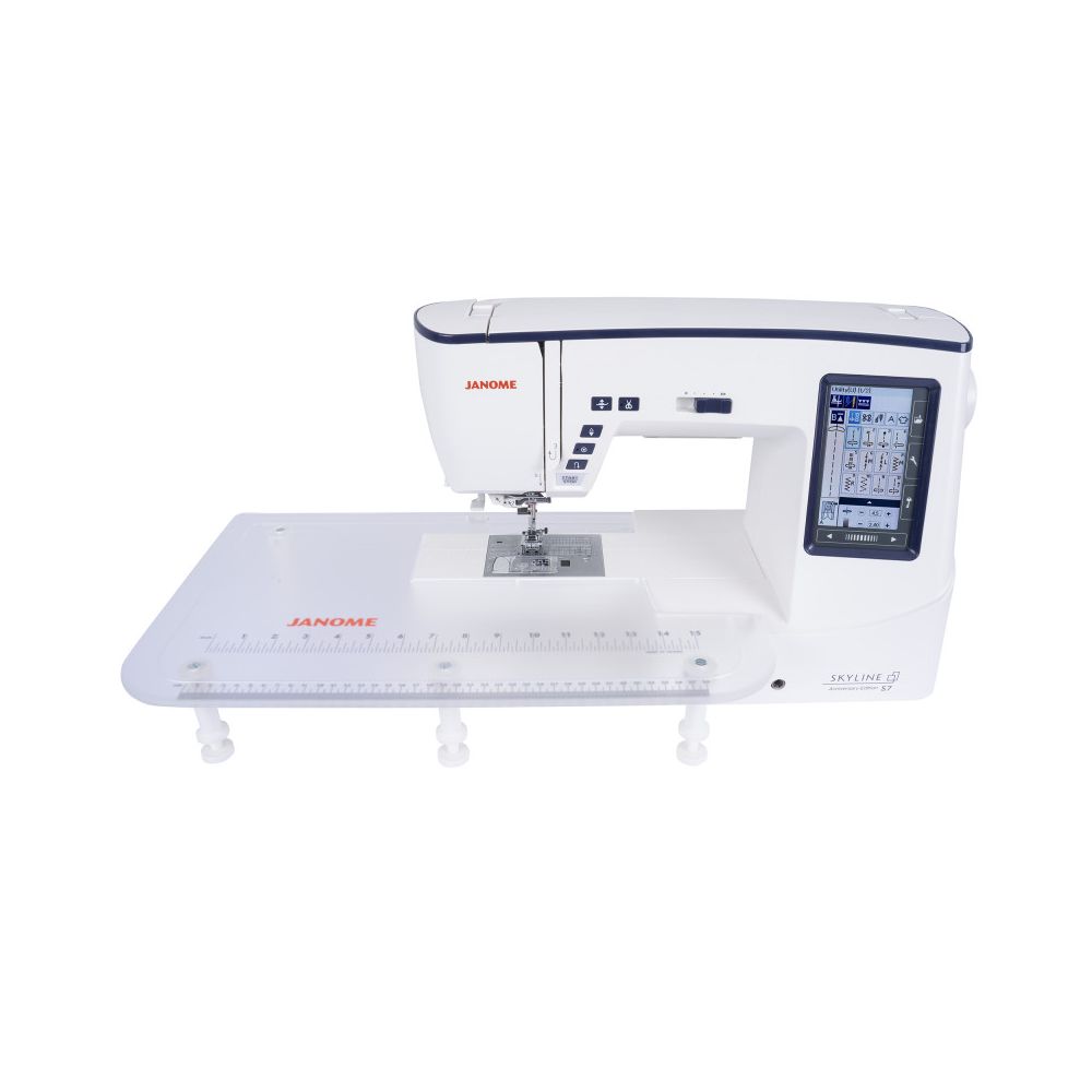 JANOME SKYLINE S7 Anniversary Edition avec grande table d’extensionOffrez-vous une expérience de couture premium avec la JANOME SKYLINE S7 AE, la machine la plus confortable de sa gamme