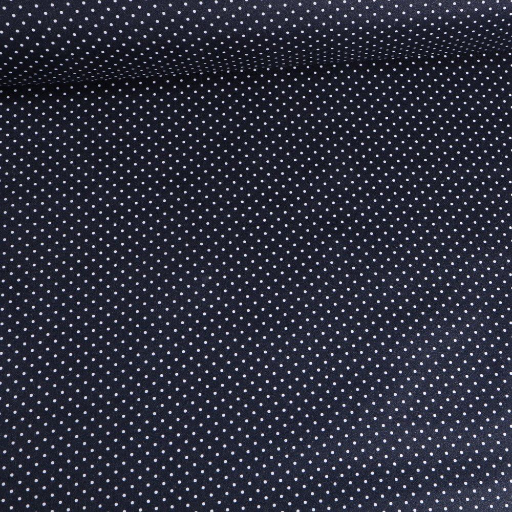 coton enduit léger marine à pois blancs 80% co 20% pC 150cm